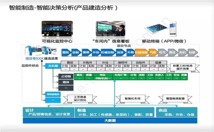 这是另外一个案例,主要解决大的ERP公司不愿意做的或者收费比较高的个性化需求的设计。总的思路还是:精益——流程优化与再造——培养精益文化扎根员工思想,然后再解决信息化孤岛的问题。从设备层到执行层、到决策层、到用户, 都要做到真实、有效、透明、快速反馈。