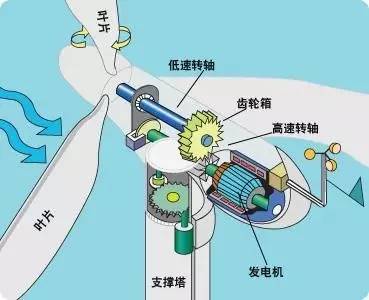 而且,叶片越少,额定转速越高,转速高到一定程度,叶尖的圆周线速度很大,引起风阻也大,阻力矩限制了发电功率和转速的进一步提高。所以,叶片太少也不好,三叶片主要是好平衡,而且成本低,经长时间验证,成了今天普遍的风机形式。