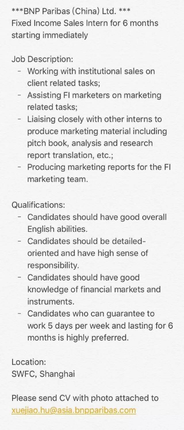 简历投递至:hrintern@huaxing.com,邮件主题及简历命名为:【投资者关系实习生】姓名+学校+年级+每周可工作天数+可持续几个月