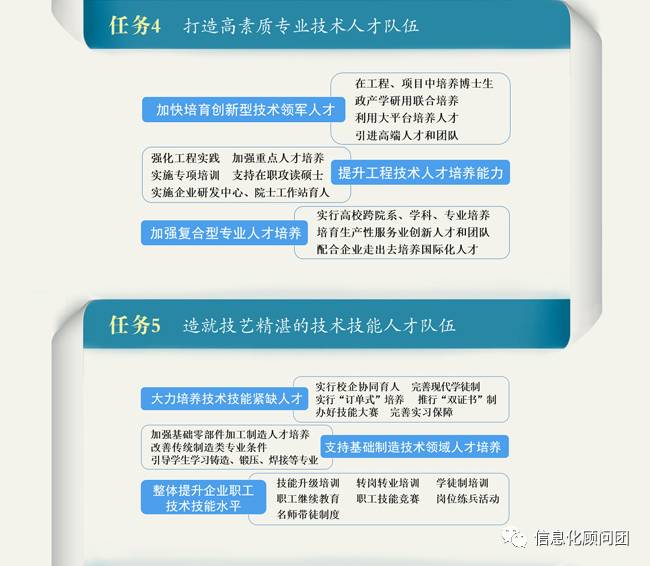 未来教育部和人力社保部等部门将及时发布人才需求预测,引导高校招生计划向对应制造业十大重点领域的相关专业倾斜。