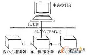 由于FMS使用的是西门子控制器S7-200,配有通讯模块CP243-1。CP243-1是一种通讯处理器,设计用于在S7-200自动化系统中运行。它可用于将S7-200系统连接到工业以太网(IE)中,有助于S7产品通过因特网进行通讯。因此,可以使用STEP 7-MicroWIN对S7-200进行远程组态、编程和诊断。而且,一台S7-200还可通过以太网与其他S7-200、S7-300或S7-400控制器进行通讯,并可于OPC服务器进行通讯。在整个系统的以太网里,CP243-1可以作为服务器,也可以作为客户机,据客户影服务器原理的每个通道运行。每个通道每次只能接收、处理或响应(主动响应或被动响应)一个命令。只有在发送响应后,CP243-1通讯处理器才能接收其他命令。如图3所示。