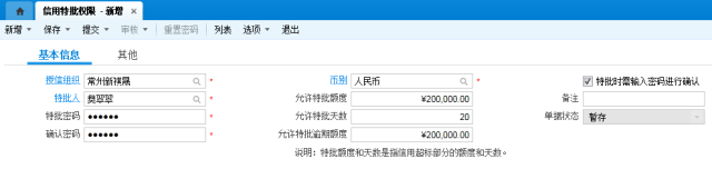 天晟公司子公司众多,业务量庞大,各公司的客户可能存在良莠不齐的现象。为了各子公司能更好的良性运作,降低企业的整体运营风险,天晟集团启用了信用控制规则,针对不同的客户分别设置不同的信用等级与额度,对销售订单设置检查信用额度、检查逾期天数及密码特批等规则,实现不同的特批额度与特批天数分别由不同的人进行特批,以降低企业应收款的风险。