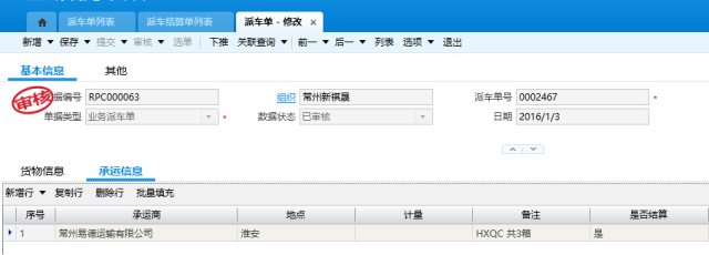天晟新材项目组通过对项目需求的分析,在一个平台的基础上,结合K/3 Cloud BOS的扩展性及与系统的无缝结合,为天晟新材开发了企业独有的派车管理系统,以便天晟能与合作的运输公司进行对账与结算。