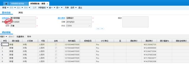 天晟新材为了规范价格管理以及灵活应对价格调整,启用了调价管理功能。不仅针对供应商进行调价管理,同时针对客户也进行调价管理。