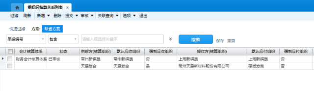 天晟新材采用K/3 Cloud多组织架构建立集团组织模型,天晟新材定义为总公司,为集团本部,统一管理基础数据,另外虚拟了一个天晟集团,为后续集团管控创造条件;天晟新材作为集团本部,集中进行各子公司的财务、人事、运营与信息化的管理,同时负责常州天晟复合材料有限公司的销售业务,常州天晟复合材料有限公司负责天晟新材接单的生产与采购等相关业务,其他子公司或工厂法人作为独立的经营业务主体进行产供销等业务,集团下辖四个事业部,各子公司作为法人分属各事业部.2.发挥各自优势,进行组织间交易与结算