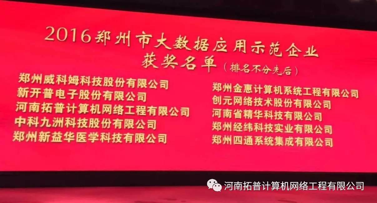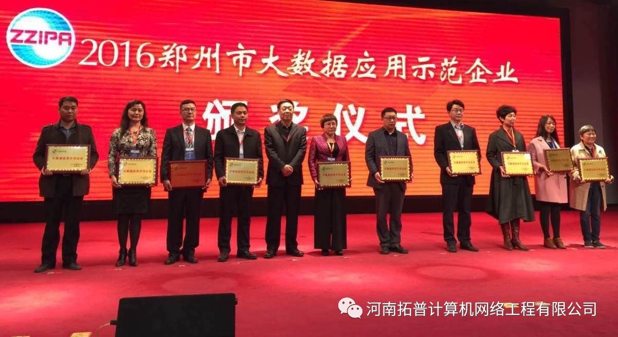 河南拓普计算机网络工程有限公司凭借独具价值的行业贡献度及业界影响力,从众多优秀参选企业中脱颖而出,荣获"大数据十大示范企业"