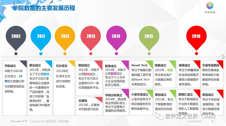 华院是一家具有千人规模、百亿市值的大数据集团企业。华院数据作为国内大数据应用的先行者,到目前为止已经成功孵化了分析、数云、数创、数尊等14家各垂直领域的大数据应用公司。华院数据还在深入研究并拟投资和孵化的行业领域包括政府管理、社会治理、农业、金融、教育、医疗、健康、汽车、物流、影视娱乐等。目前华院系公司人员规模近1000人,公司总估值达百亿。