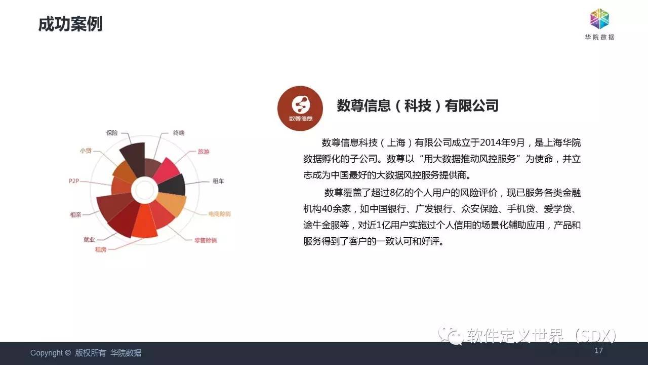 数尊信息科技(上海)有限公司成立于2014年9月,是华院数据基于大数据核心能力面向金融风控领域孵化的子公司,以用大数据推动金融普惠为使命,致力于成为中国最专业的第三方智能风控服务提供商。