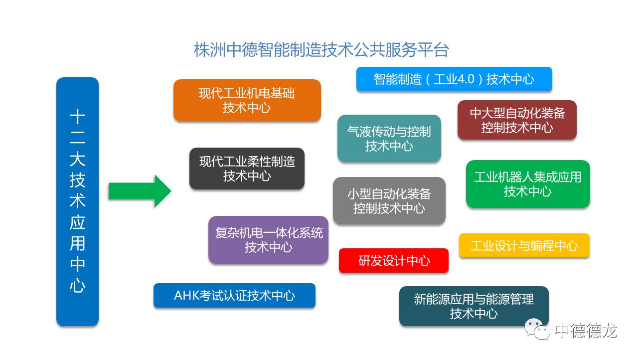 由该公司投资建设的中德智能制造技术公共服务平台位于湖南省株洲市国家高新技术产业开发区动力谷自主创新园。平台建设现代工业机电基础技术中心、气液传动与控制技术中心、小型自动化装备控制技术中心、中大型自动化装备控制技术中心、复杂机电一体化系统技术中心、工业机器人集成应用技术中心、现代工业柔性制造技术中心、AHK考试认证技术中心、工业设计与编程中心、研发设计中心、新能源应用与能源管理技术中心、智能制造(工业4.0)技术中心等12个功能中心。平台总投资3500万元(不含基础设施建设),建设面积约2500平方米。
