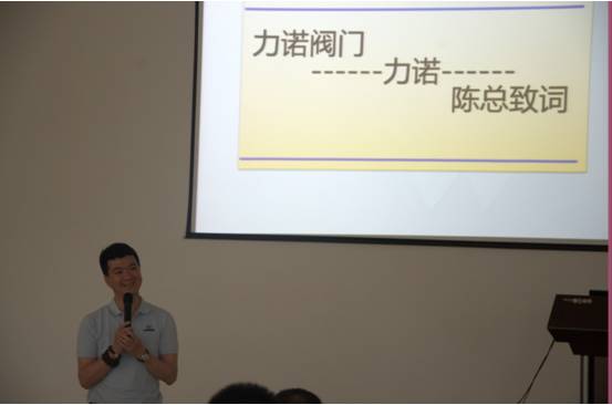 议程二:鼎捷项目团队高层领导发言,他称力诺员工们朝气活力的心态带给他惊喜,鼎捷非常重视与力诺的长期合作,同时,力诺也是鼎捷在温州最重要的三个项目之一。