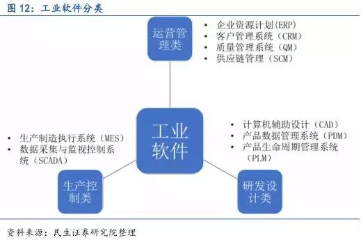 应用软件则能够根据用户需求提供针对性功能,在智能制造流程中,工业软件主要负责从事生产控制、运营管理、研发设计等方面进行优化、仿真、呈现、决策等职能。