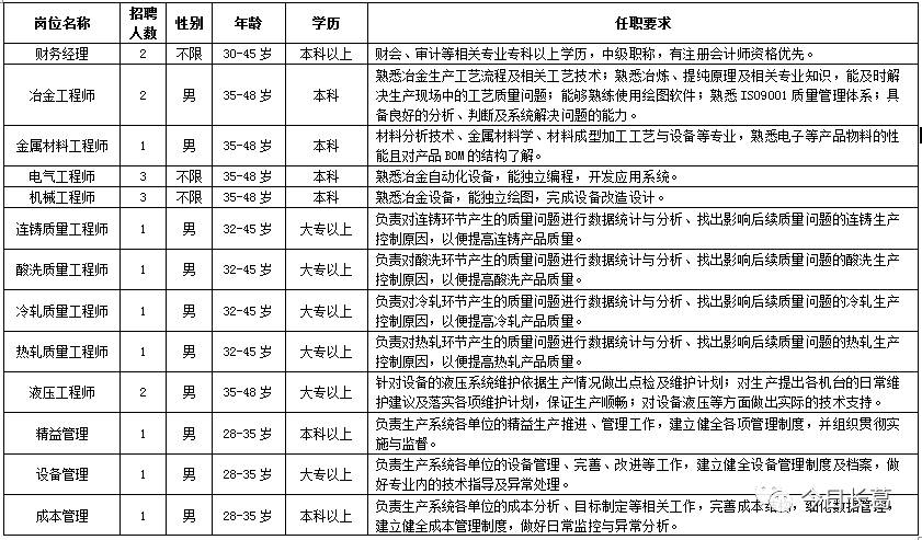 1.河南金汇不锈钢产业集团有限公司根据集团公司发展需要,现面向社会招聘以下工作人员。