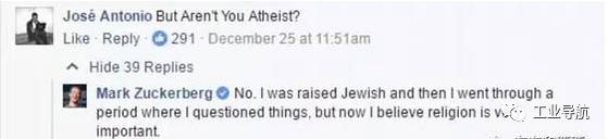 去年圣诞节还在FB上发文祝贺朋友们圣诞快乐和光明节快乐,当时有人问他:你不是无神论者吗?小扎回答说:我在犹太教育中长大,曾经有过一段时间的迷茫和困惑,但我现在相信宗教是非常重要的。