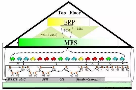在生产线上既然MES采集了几乎车辆生产制造过程中的全部生产过程信息,这些信息除了用作进行传统MES功能之外,更为重要的一点就是随着所监测的对象车辆的流动,这些大量流动的半成品带动着大量的零部件也在形成流动,推而广之,从内物流到外物流再到外协厂家整个供需方形成了一个流动的价值链,对于大批量生产的汽车行业,这个流动的价值链无疑是构成隐型成本的一个重大要素,成本的控制的好坏已经不只是看得见的采购、直接生产等成本,尤其对于流程装配性的行业,库存才是应该控制的重点,这已经形成共识,控制库存,也就是控制着整个价值链处物料的合理流动,价值链流动的源头是什么?是生产线车辆的布置形态,也就是MES所适时监控到的车辆所在的生产工序,这个工序点也就决定了什么时候需要多少需要什么样的零部件,物料顺着价值链的流动这也就形成了JIT的概念。基于这个思路去谈MES在汽车整车制造行业的应用,也许这才是更为重要的一层含义。目前,绝大部分价值流动是通过上层的ERP的计划组织来实现的,如何改为通过与MES相结合的方式来连接实现,无疑是个巨大的进步。