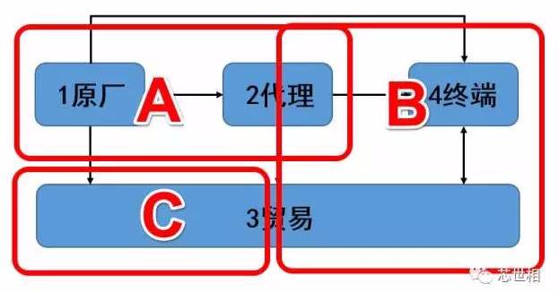 老司机在《终于有人把芯片元器件贸易商彻底说透了!》中将芯片分销链条分为A,B,C三块。
