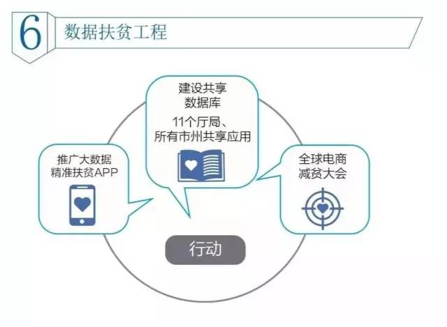 实施“政府大数据应用专项行动”,在扶贫、旅游、医疗、教育、粮食、食品、交通、民政、人社、国土、工商、环保、税务、安全生产、北斗等方面重点建设50个典型示范应用。