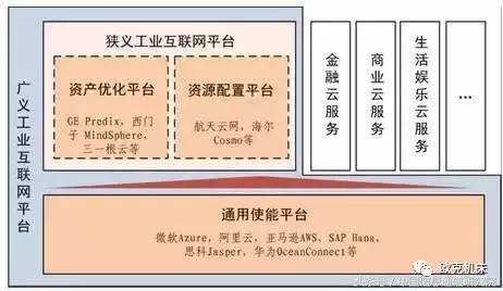 广义的工业互联网平台除了包含上述两类之外,还包括通用使能平台。这类平台提供云计算、物联网、大数据的基础性、通用性服务,主要由ICT企业提供。其中有的侧重云服务的数据计算存储,如微软的Azure、SAP的HANA、亚马逊的AWS以及我国的阿里云、腾讯云等,有的侧重物联网设备连接管理,如思科的Jasper、华为的OceanConnect等。范围上看,此类平台除了为工业互联网提供技术支撑之外,还广泛服务于金融、娱乐、生活服务等各产业。时间上看,此类平台发展要早于工业互联网。因此狭义上,通用使能平台不属于工业互联网平台。但当前, ICT巨头们都将工业互联网作为平台业务拓展的重点,为资产优化平台和资源配置平台的部署提供连接、计算、存储等底层技术支撑,使上层平台专注于工业生产直接相关的服务,从而实现专业分工,发挥叠加效应。如GE的Predix在部署于微软的Azure平台,得到微软在云服务基础架构、人工智能、高级数据可视化等方面的支撑;西门子MindSphere基于SAP 的HANA设计开发,又部署于Azure平台;腾讯云为三一根云平台提供大数据存储和运算能力。因此广义上,通用使能平台也可以看作是工业互联网平台重要的一大类。