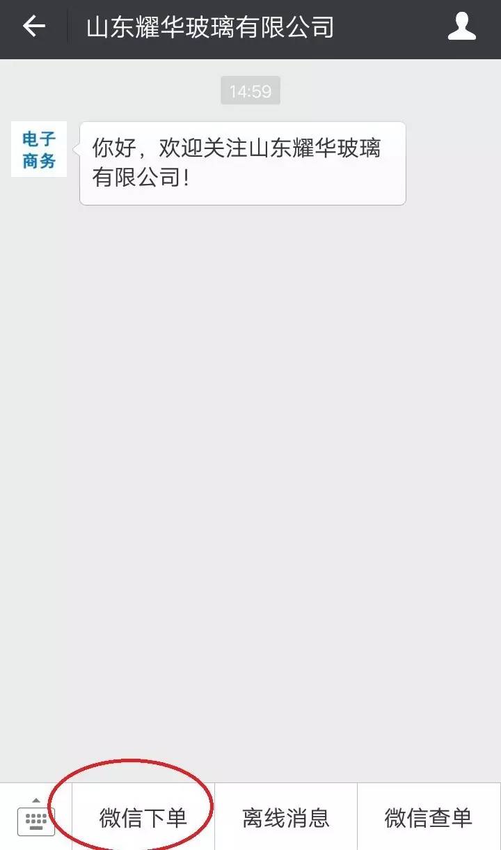 关注山东耀华玻璃有限公司微信服务号成功,点击屏幕下方“微信下单”,可拍照下单。