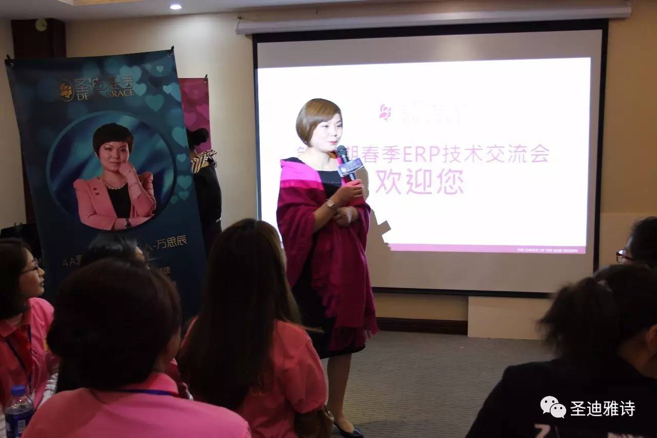 圣迪雅诗中国区品牌经理万老师为学员诠释2017圣迪雅诗品牌规划、GHA细胞护肤疗法、奈米水光靓肤术课程,健康美丽、深入人心!