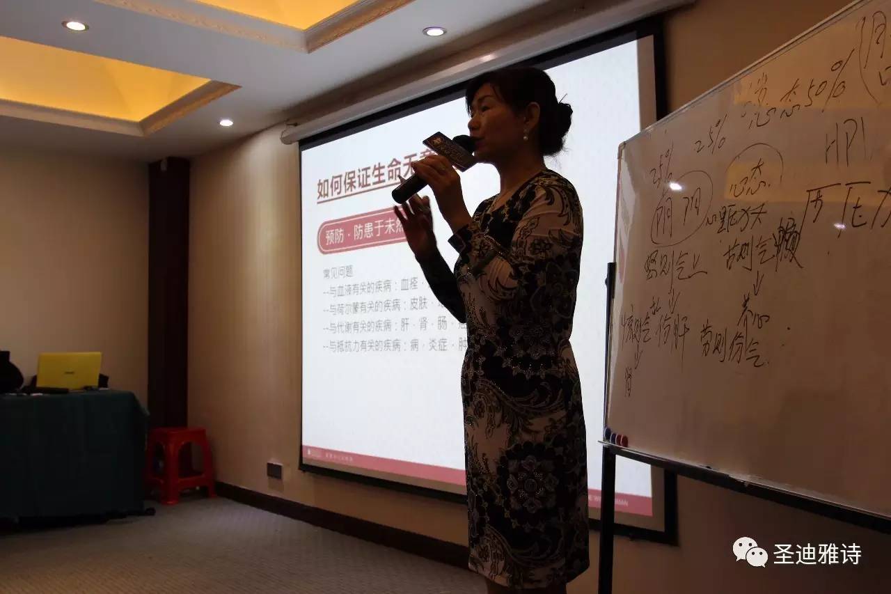 圣迪雅诗特聘养生专家刘萍老师以多年医学知识与经验,为学员们授课健康秘笈——保健食品,并现场让大家体验诊断式销售的魅力!
