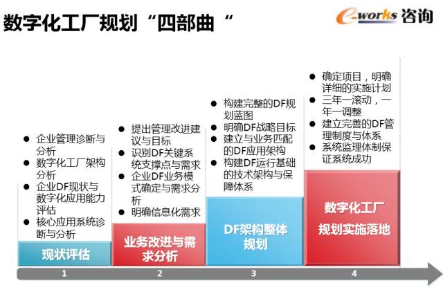 数字化工厂(DF)是由数字化模型、方法和工具构成的综合网络,包含仿真和3D/虚拟现实可视化,通过连续的没有中断的数据管理集成在一起。数字化工厂集成了产品、过程和工厂模型数据库,通过先进的可视化、仿真和文档管理,以提高产品的质量和生产过程所涉及的质量和动态性能:
