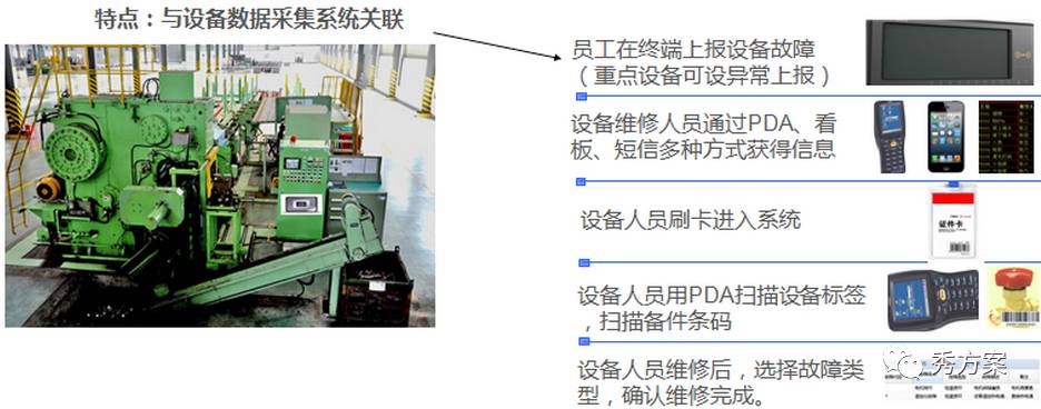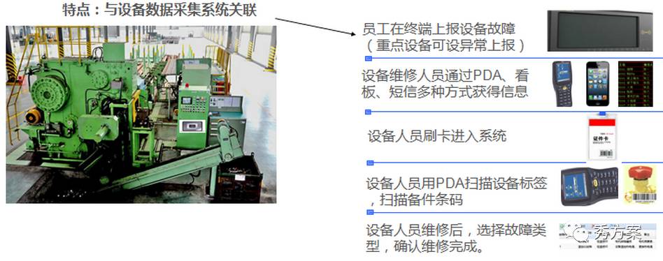 一、PMS设备智能化管理系统概述PMS设备智能化管理系统实现设备台账维护、检修计划制定、日常检修记录、突发事故抢修、设备及备件的请购作业、设备维修人员绩效考核等的数据收集及业务跟踪,可通过车间数据采集器进行远程设备快速报修工作,设备科通过各类看板可实时显示各设备状态及报修情况,并可对设备异常情况进行报警。它也是MES系统中不可或缺的一个重要组成模块!