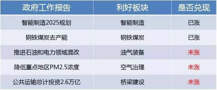 还是要看政府工作报告里边讲了什么,涉及的板块哪些涨了,哪些没涨,没涨的就是未来布局的重点。
