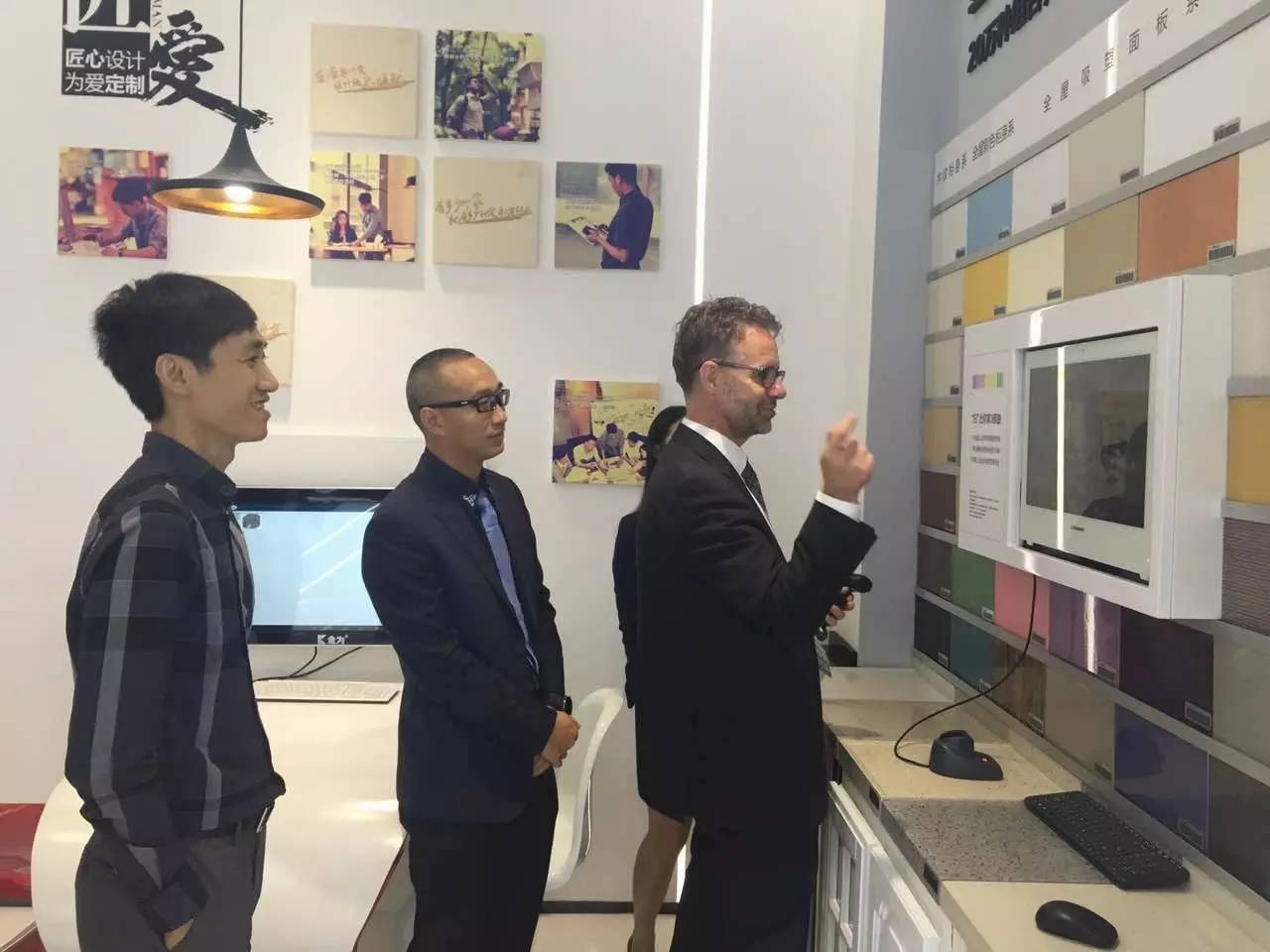 施华洛世奇专业部大中华区高级销售副总裁Flemming Nielsen (倪帆明) 一行走进尚品宅配智能工厂,在尚品宅配副总经理李鹏陪同下参观。