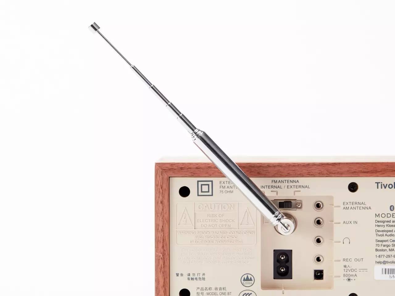 当室内信号太差,就在背后插上这个可弯扭的天线,把它甩到窗外,收听效果会更棒。
