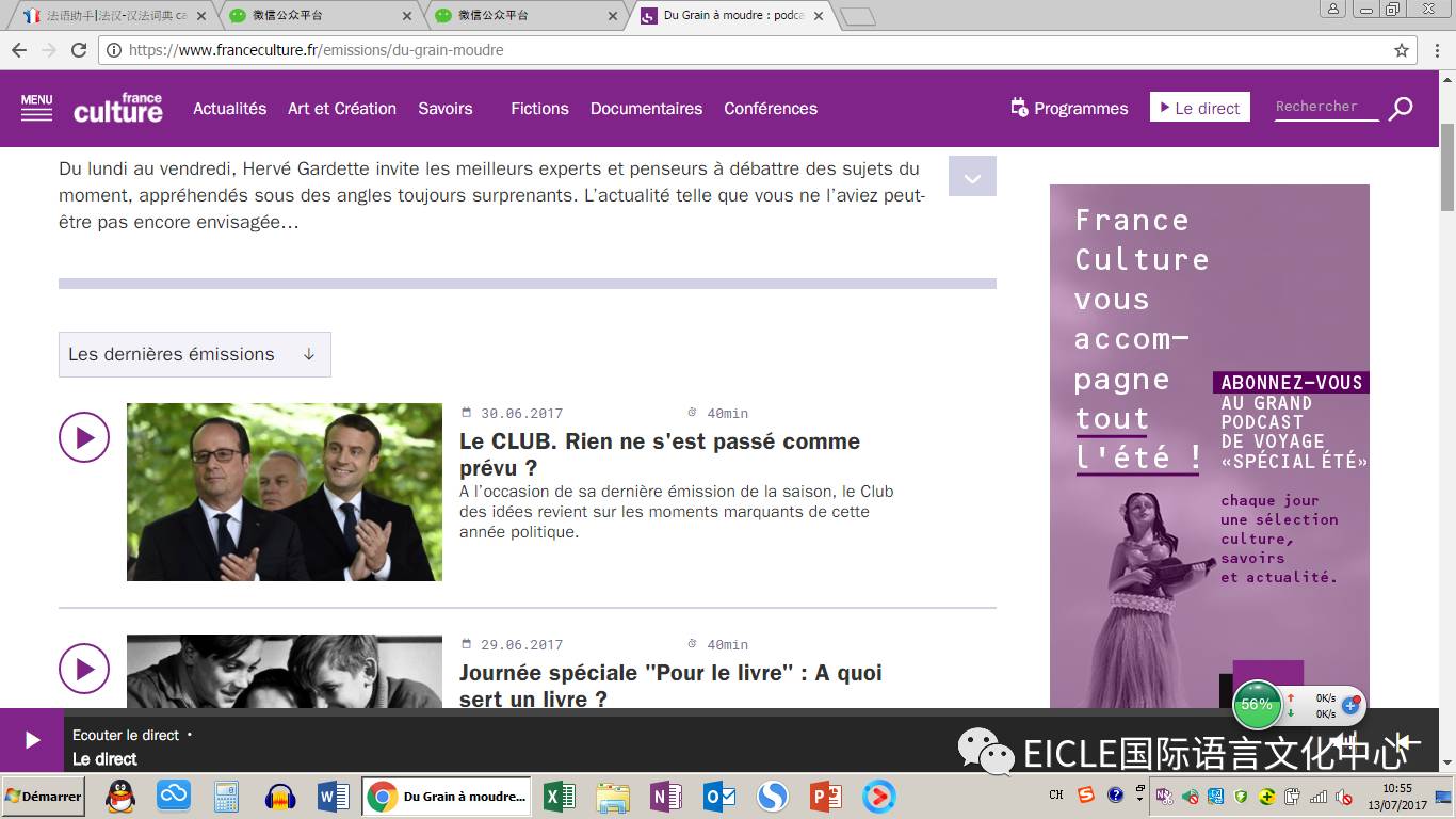 提高听力水平,最重要的是多听,把耳朵听熟了,由于DALF的听力都是涉及广播电台,涉及很多辩论的场景,所以以下几个电台节目是推荐给大家复习DALF考试最好的材料