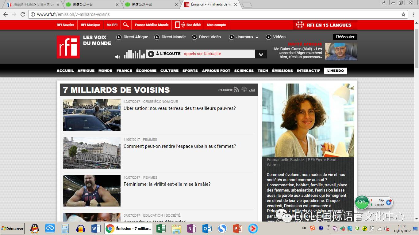 是RFI旗下的一档电台节目,每期都会有一个主题,然后会邀两到三位嘉宾解决听众来电的问题并且对于该主题做一些辩论和讨论,阐述各自的观点,这档节目是小编发现最贴合DALF考试的电台节目。每次节目大概46分钟长度,平时复习的时候可以边听边梳理每个嘉宾的观点和听众的问题,并且做一个自己的口头总结,是一个提升口语的好方法。