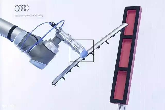 柔性装配车取代人工进行螺丝拧紧。在装配小车中布置有若干机械臂,可按照既定程序进行位置识别、螺丝拧紧。