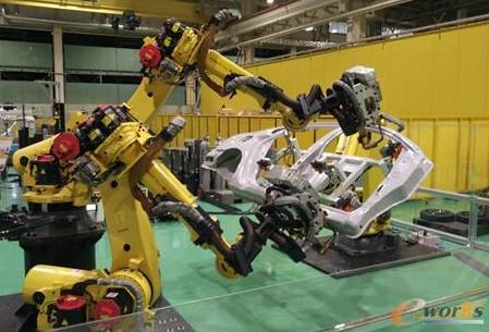 FANUC的机器人组装工厂实现了用机器人组装机器人,只有线缆和斜齿轮还需要人工装配,其他零部件实现全自动化装配,同样配备了立体仓库。考察团参观的工厂生产R-2000i 系列大型通用机器人,每月产量为2500台。R-2000i系列机器人具有很高的可靠性和优异的性价比,进一步提高了智能化功能和网络功能,广泛适用于点焊、搬运、组装、涂胶等工艺。