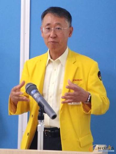 FANUC公司副社长、CTO、董事内田裕之先生来会议室,用流利的中文向考察团致辞。内田先生也担任智能机械事业本部的本部长。内田先生向考察团表示诚挚的问候,并欢迎大家参观FANUC工厂。内田先生说,FANUC在大中华区有很多大客户,为了方便与中国客户交流,他从十年前开始学习中文。