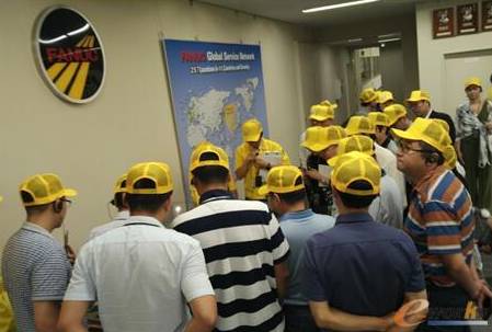 2017年6月28日上午,e-works日本智能制造考察团参观了全球最大的工业机器人生产企业FANUC(发那科)总部,并参观了机器人工厂。