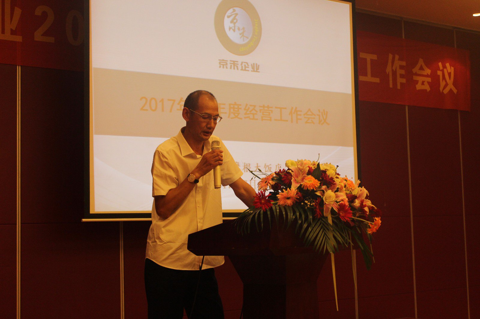 会议最后,京禾企业董事长田龙向大家发表讲话。首先田总对2017年年上半年的战略目标进行了回顾,公司的快速发展离不开京禾人的辛勤付出!同时田总对2017年京禾下半年的布局进行战略性的部署。
