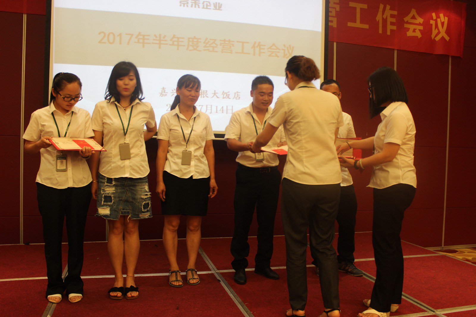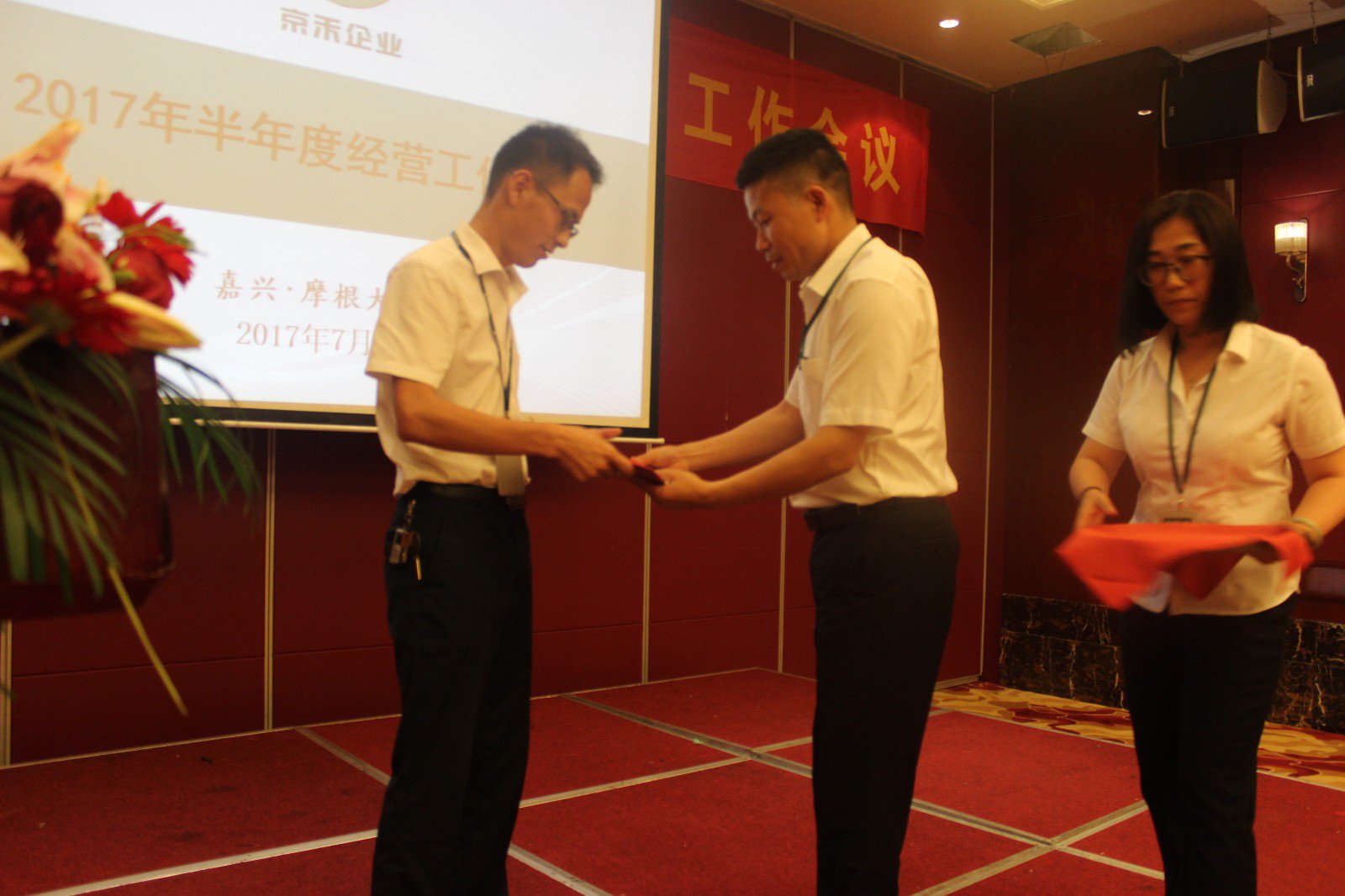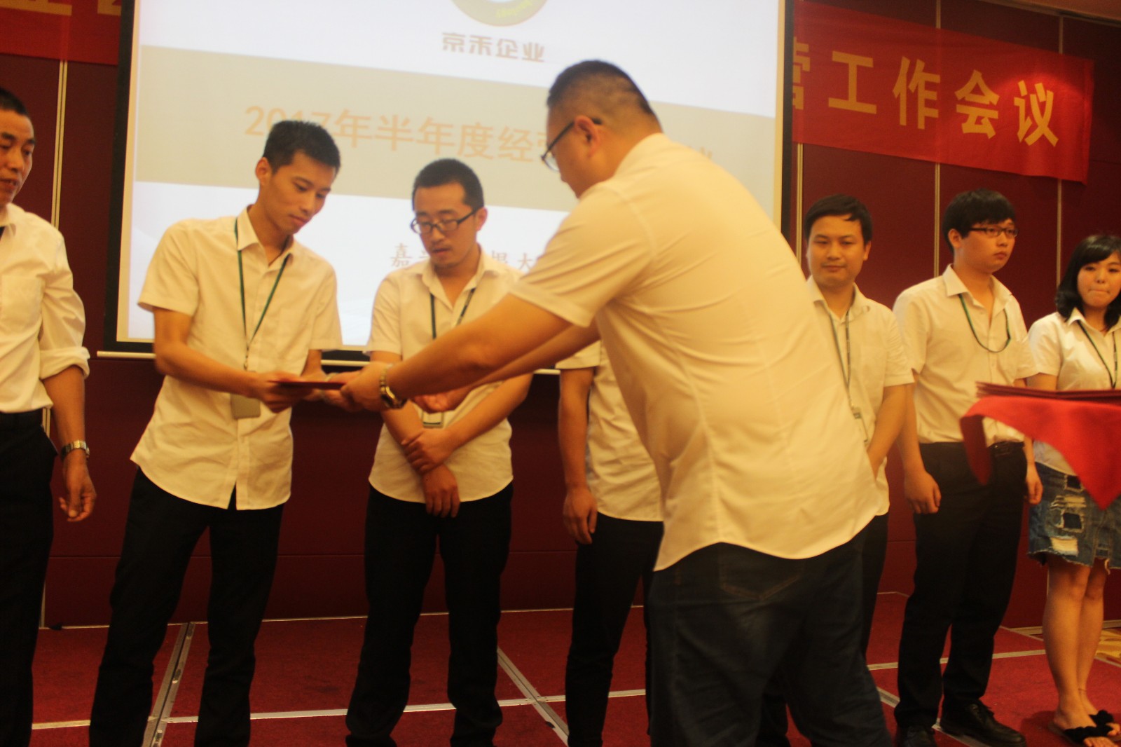 2017年7月14日,“京禾企业2017年半年度工作会议暨630表彰大会”在摩根大酒店南湖厅2号会议室隆重召开。会议以总结和分析2017年上半年各部门情况,部署和推进下半年工作为主题,规范管理,开拓创新,使命必达,愿景在前。同时对于在630专项工作中表现突出的员工授予“榜样员工”及“榜样团队”,并进行了隆重的表彰仪式!