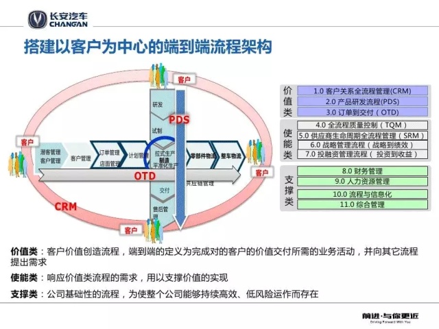 汽车个性化定制的实现,还需要搭建以客户为中心的端到端流程架构,这涉及价值类、使能类和支撑类三方面的内容。
