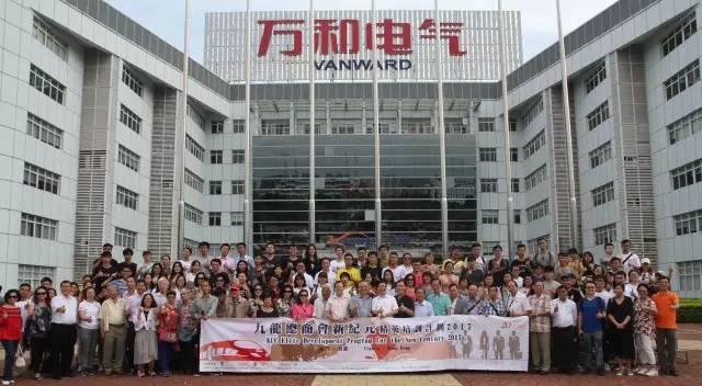香港九龙商会企业家代表团及“新纪元精英培训计划”成员在万和新电气总部前合照