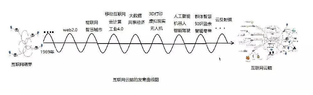 互联网云脑在发育过程中也不是均匀的。往往是一个技术或模式成熟后,下一个技术或模式才有蓬勃发育的基础。web2.0,物联网,云计算,工业互联网,大数据,人工智能。。不是超出互联网的新事物,而是互联网云脑发育过程中,一个个波浪高峰,这些前沿技术之间的割裂和孤立,是互联网云脑各神经系统发育的不均匀现象产生的错觉。