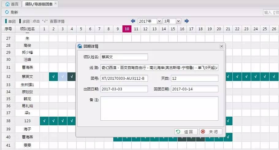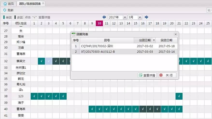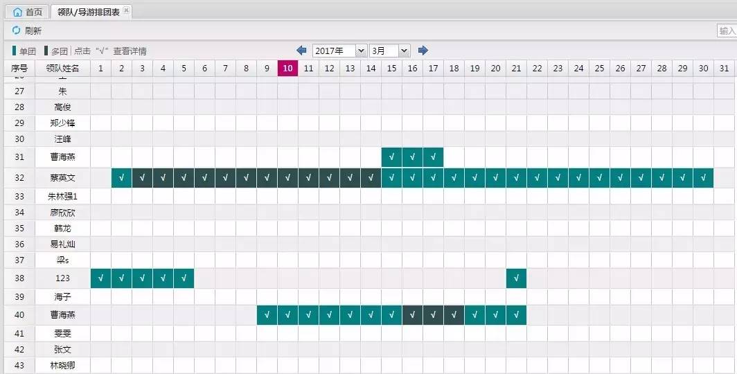 要安排领队带团,却不知道哪个领队哪天有空?一个个打电话问?还是一张张翻团期计划表查询?
