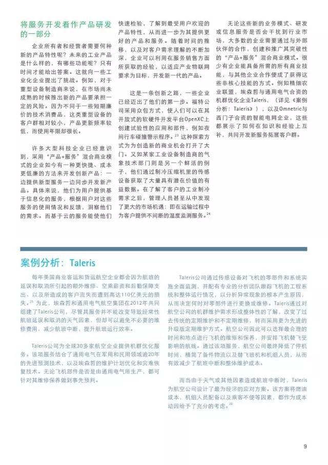 报告将借助一个矩阵结构对现有企业的产业物联网发展现状进行了分析,其横坐标分别由:非数字产品、数字化产品线、新的市场细分所组成;其纵坐标则由:产品、设备服务、信息服务所组成。依托这个分析架构,该报告逐一讲解了通用电气、米其林、德国克拉斯公司以及虚拟影像公司,目前在产业物联网领域中的发展现状。报告认为“产业物联网的重要亮点之一即为运营效率的提升,这也是早期的关注点。”但随着其调研的深入,愈来愈发现产业物联网的价值已经开始纳入到企业提升运营效率的相关战略中,而对于那些致力于推出全新数字式产品和服务的企业而言,产业物联网同样孕育着巨大的潜能,即创造全新的收入来源,以及改善企业营收和盈利能力。