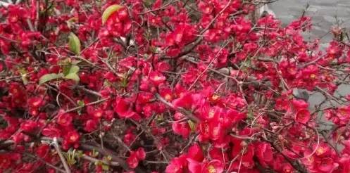荆川公园内的盆栽龙形贴梗海棠已进入盛花期,主要集中在香樟林附近。其他各个公园的地栽贴梗海棠也正争相绽放,娇艳的小花层层叠叠盛开于枝条上,点点如胭脂,十分美丽。
