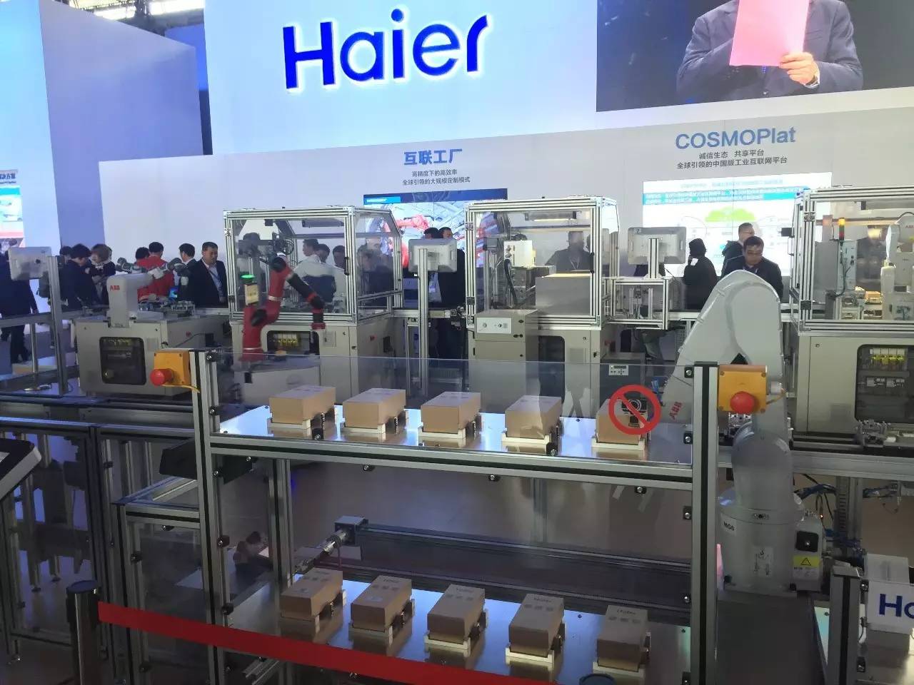 在AWE的互联工厂展区,海尔现场展示了定制冰箱示范线和COSMOPlat,令人感受到工业生产正在从大规模制造向大规模定制转型的大趋势已难以阻挡。