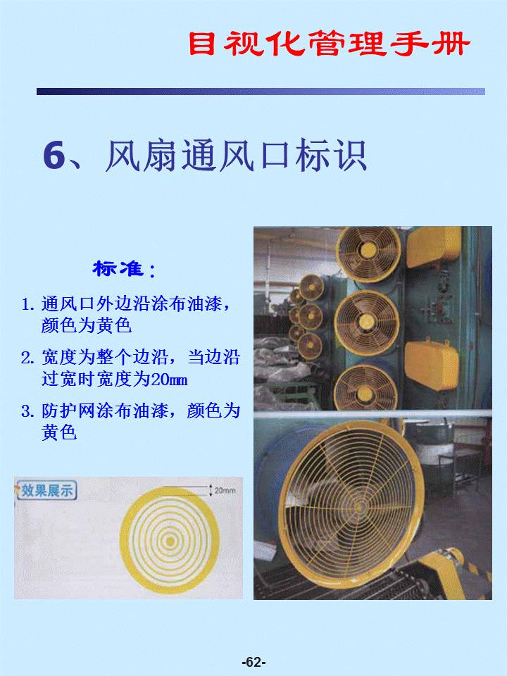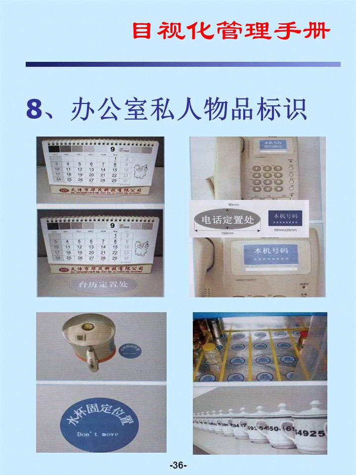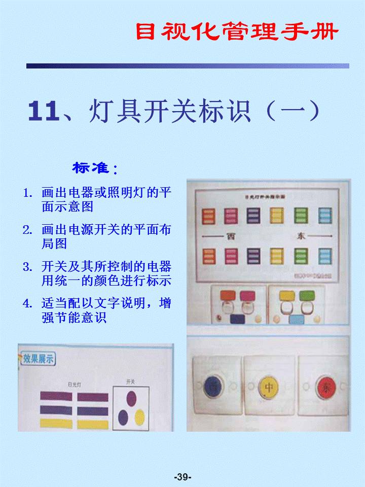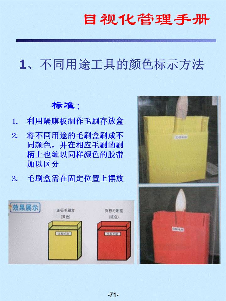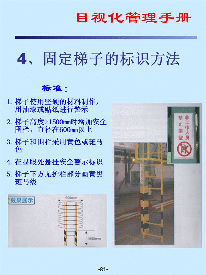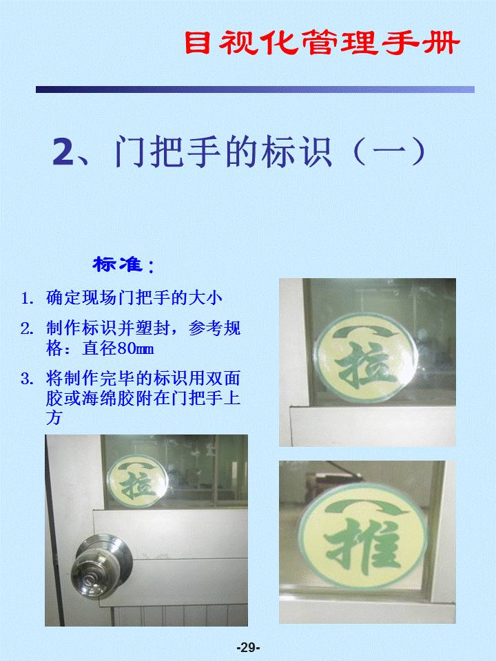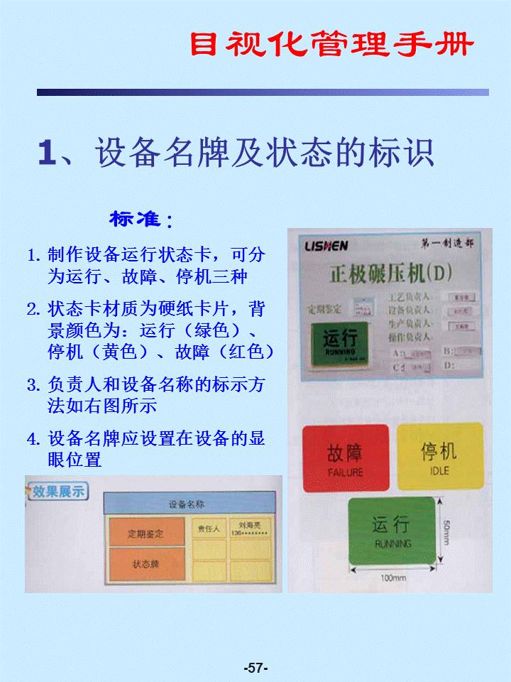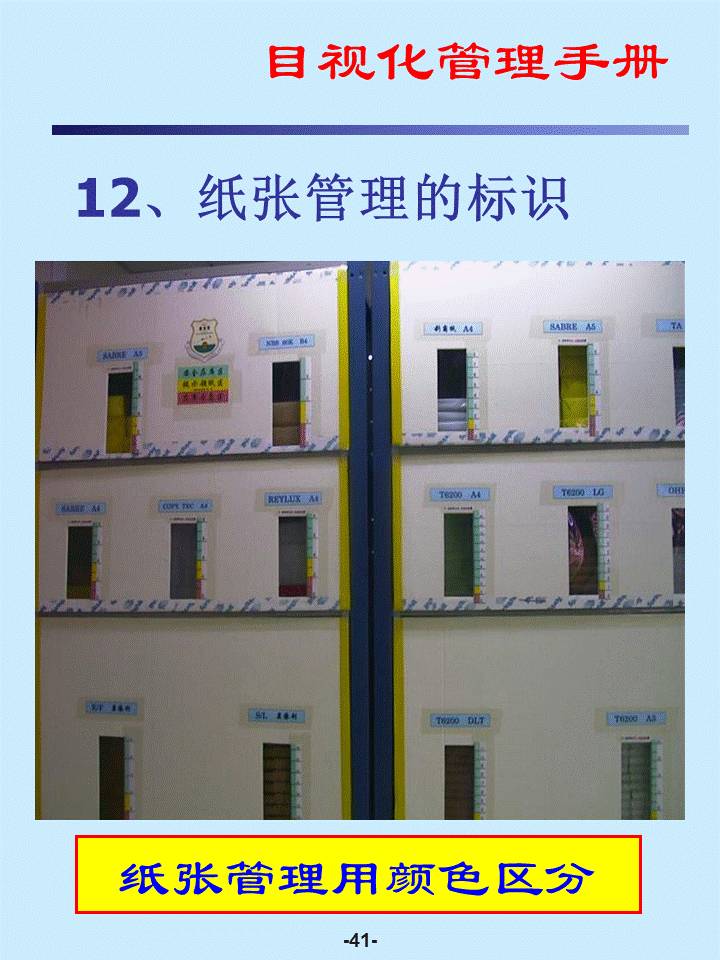 目视化管理是利用形象直观而又色彩适宜的各种视觉感知信息来组织现场生产活动,达到提高劳动生产率的一种管理手段!本PPT资料非常全面系统生动,值得各企业认真学习,打牢基础。