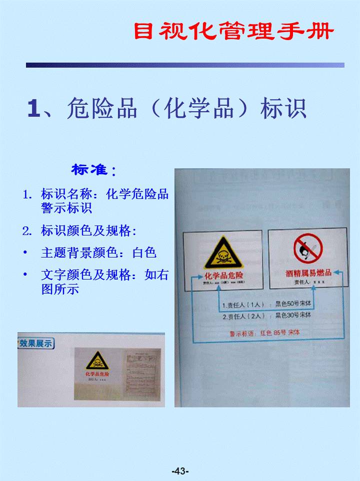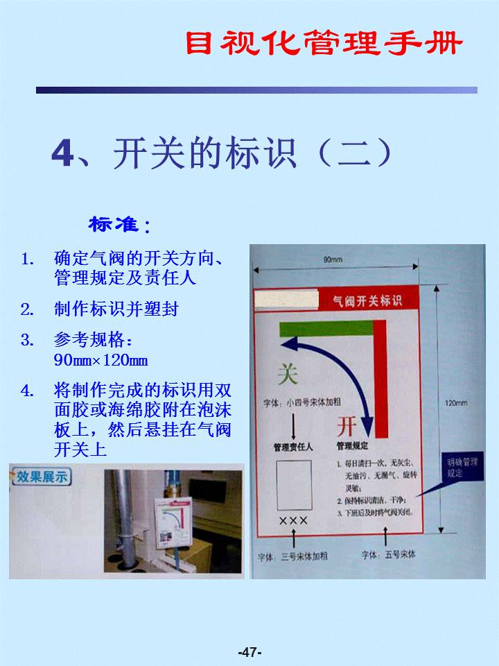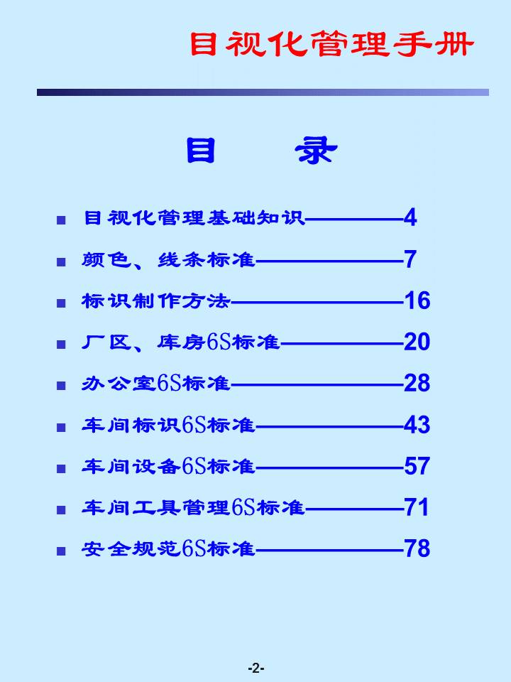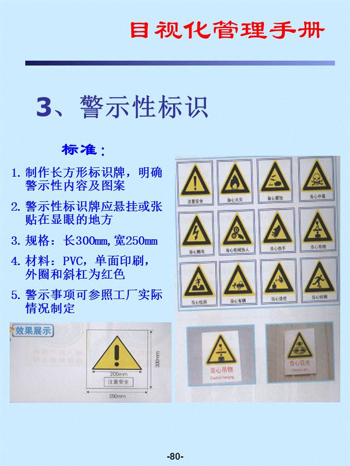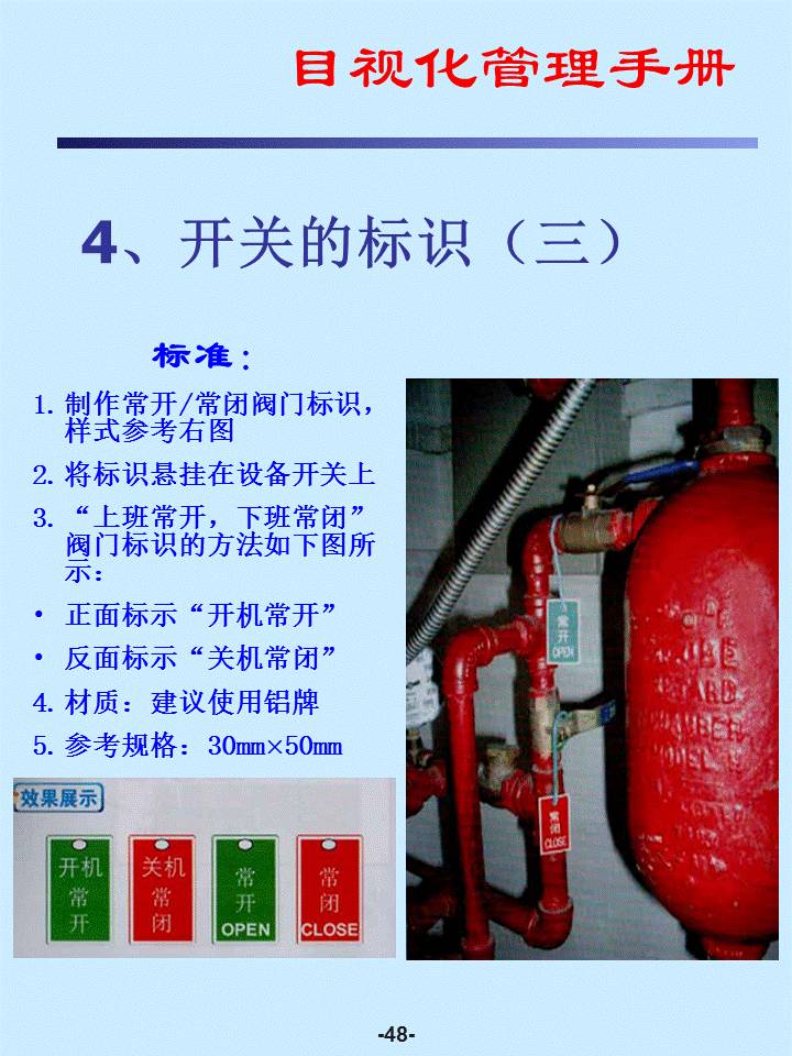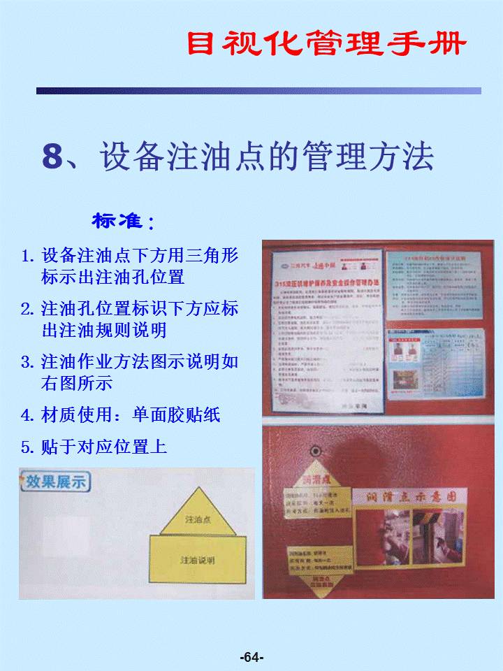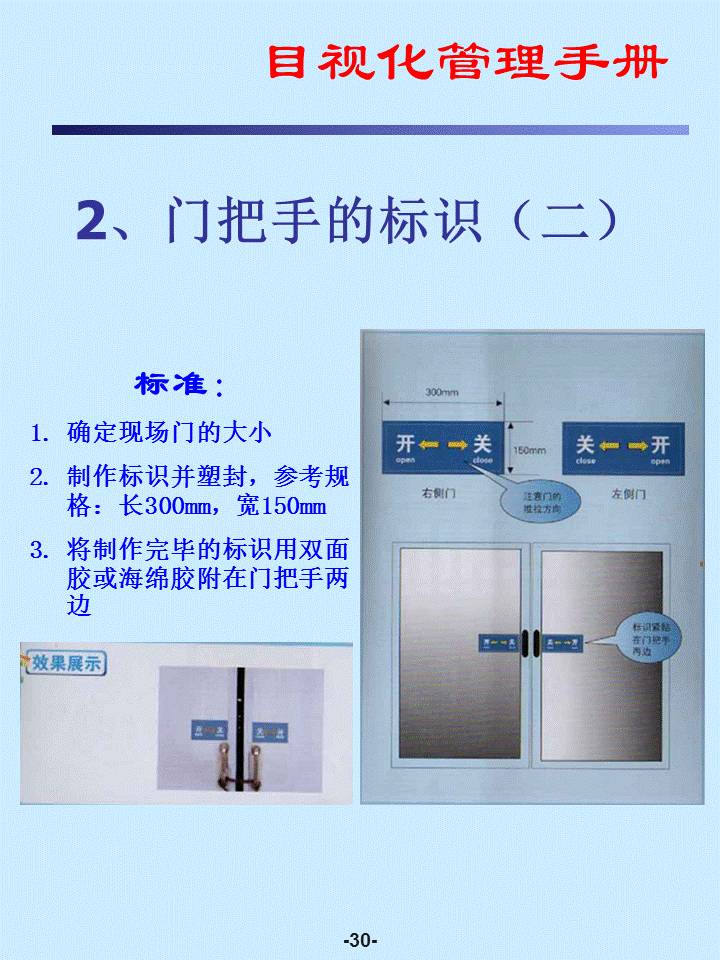 目视化管理是利用形象直观而又色彩适宜的各种视觉感知信息来组织现场生产活动,达到提高劳动生产率的一种管理手段!本PPT资料非常全面系统生动,值得各企业认真学习,打牢基础。