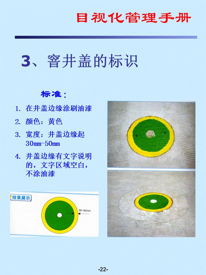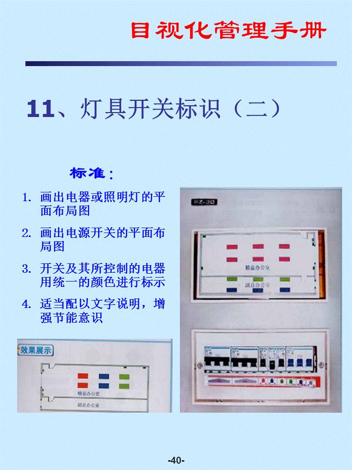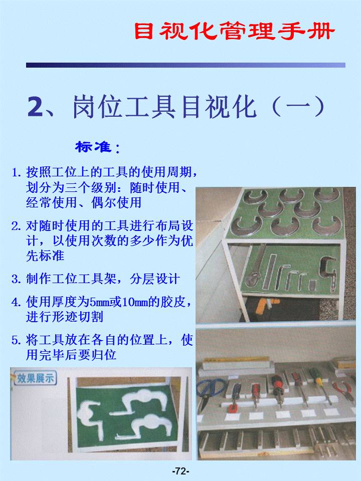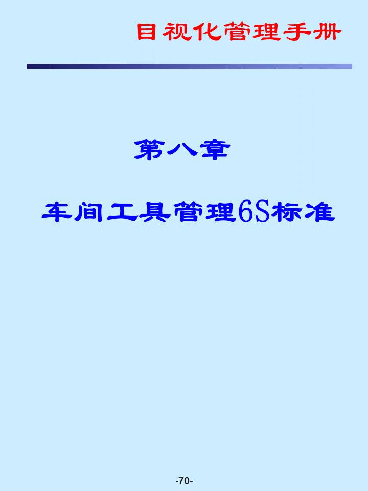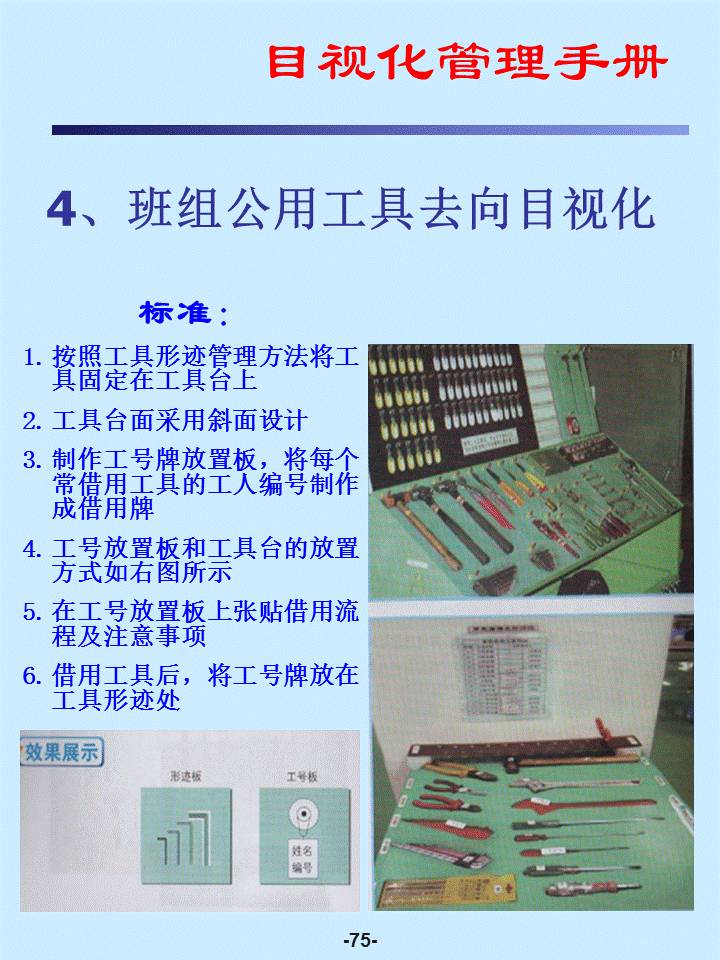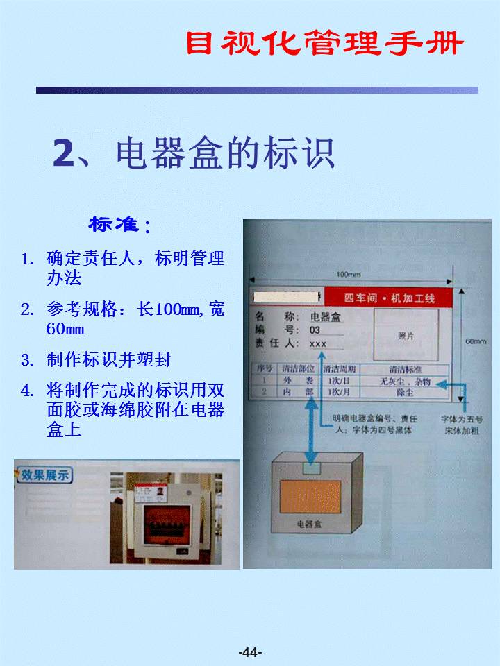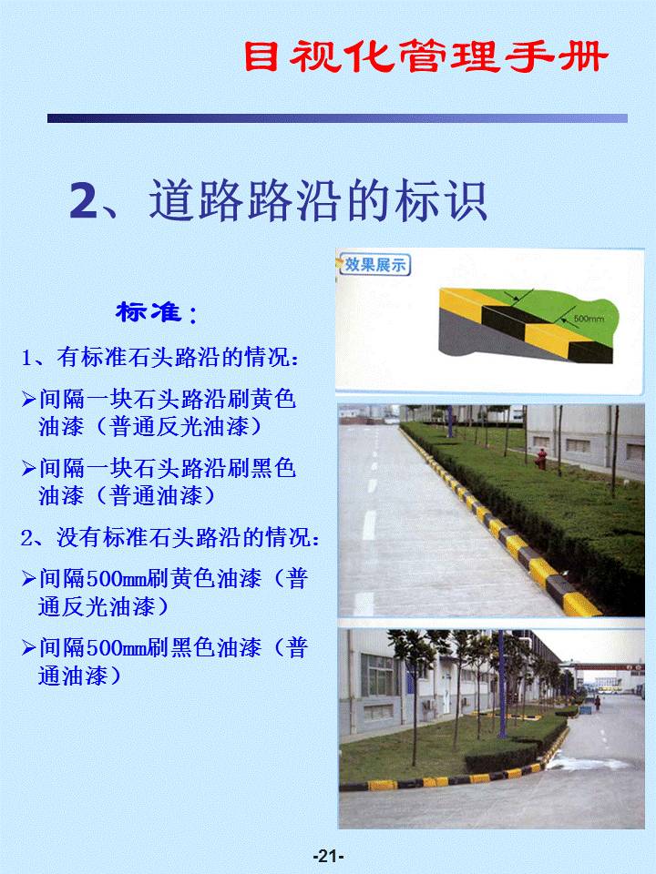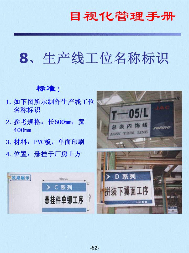 目视化管理是利用形象直观而又色彩适宜的各种视觉感知信息来组织现场生产活动,达到提高劳动生产率的一种管理手段!本PPT资料非常全面系统生动,值得各企业认真学习,打牢基础。