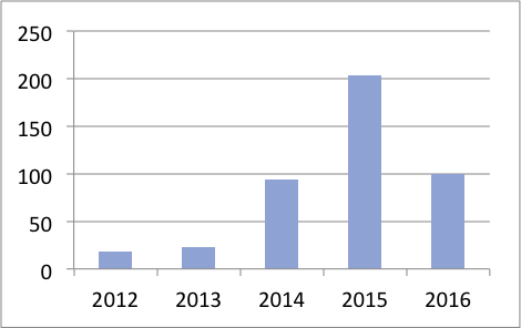 只是风吹得不久,2016年的餐饮投资案例数量陡然比2015年少了一半。