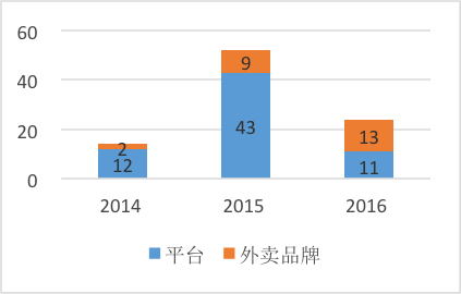 ▲ 2014-2016 获得融资的外卖平台及外卖品牌数量
