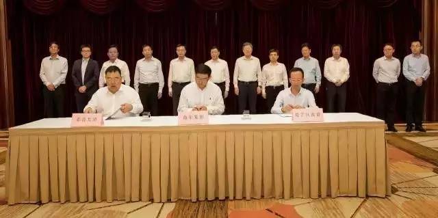 ▲海尔集团、松江区政府、临港集团三方签署合作协议